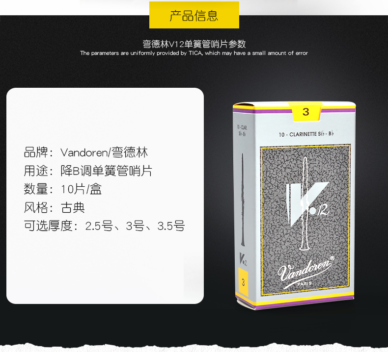 French original Vandoren bend dellin V12 grey box silver box drop B clarinet black tube whistle sheet