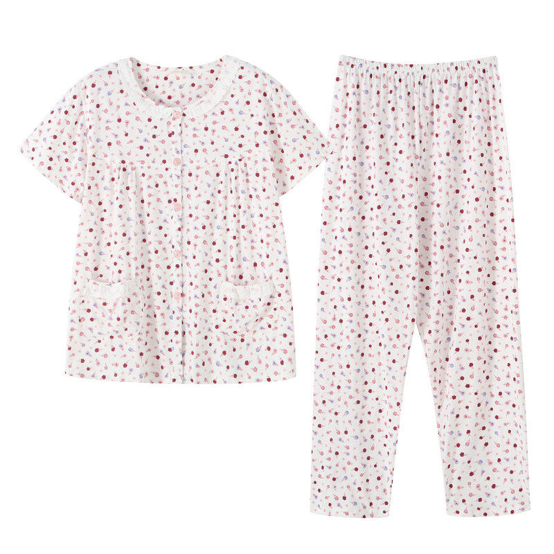 Middle aged short sleeve woman sleepwear summer thin pure cotton short sleeve long pants female pyjamas for overweight elderly woman pyjamas-Taobao