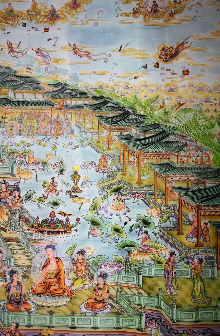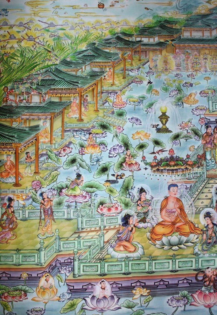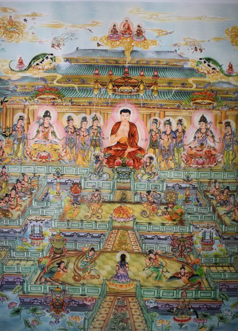 Buddha's statement map Western Paradise map Western Three Saints portrait Buddhist portrait HD version has been mounted