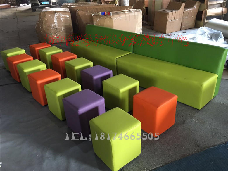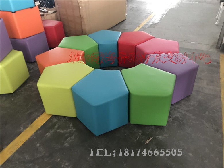Kindergarten Early Education Center Children's Rhombus Polygon Custom Leather Fabric Clothing Store Shoe Store Changing Shoes Sofa Stool