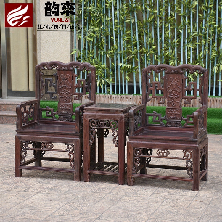 Lao Great Red Acid Branches Too chair Three sets of red wood Old material Palace Palace Chair Casual Living-room Guests Antique Tea Chair