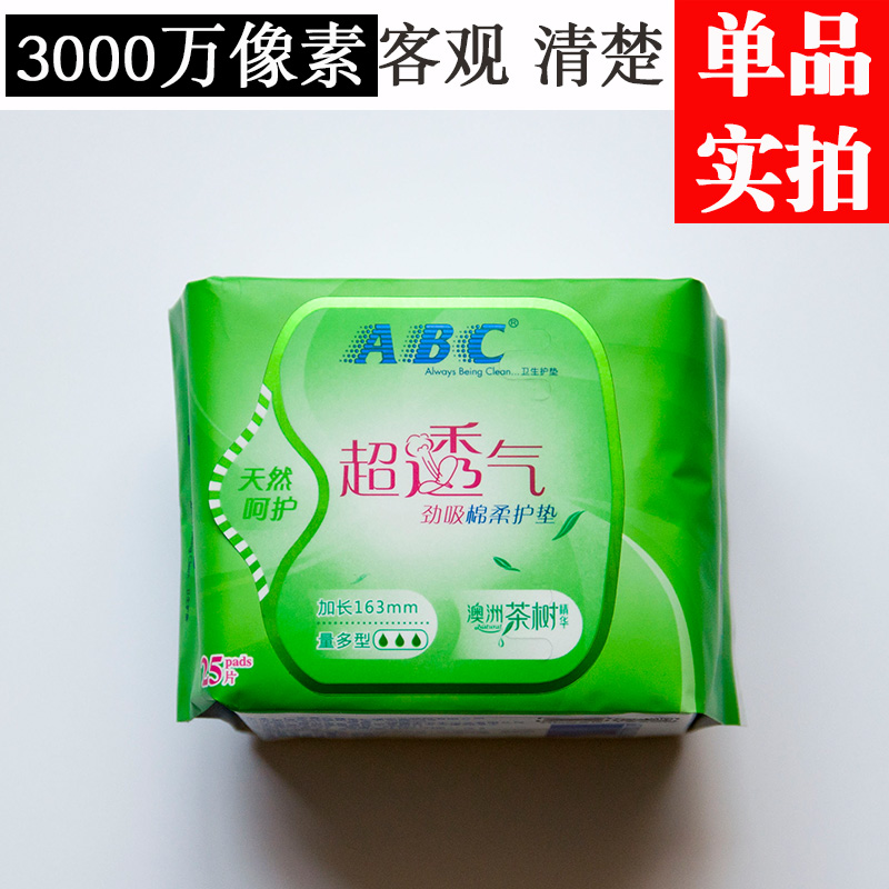 abc sanitary napkin pad N25 superabsorbed tea tree essence cotton soft surface 25 pieces bag 163mm