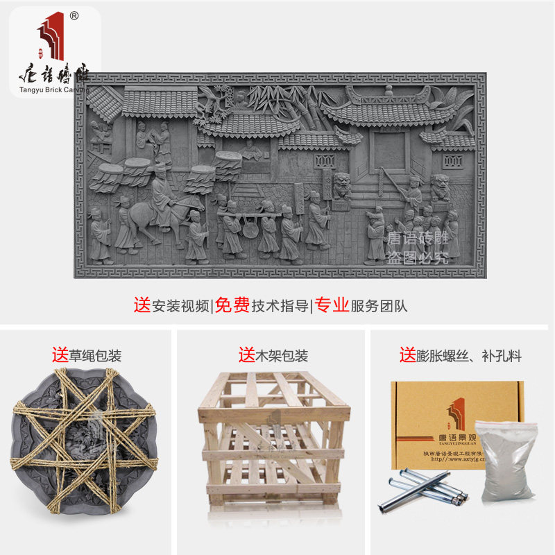 Tang language ancient building materials Courtyard relief Chinese tea restaurant shadow wall wall core antique brick carving Champion Quaguan 3M