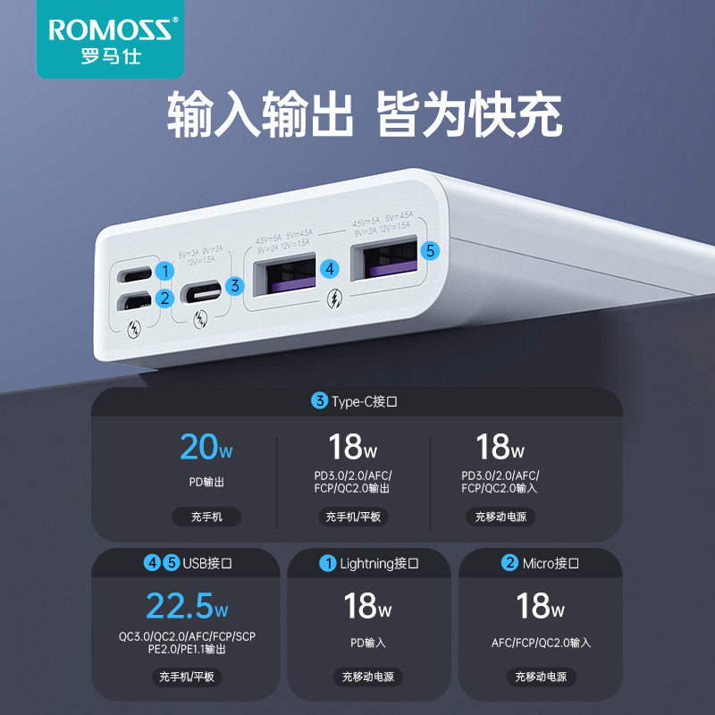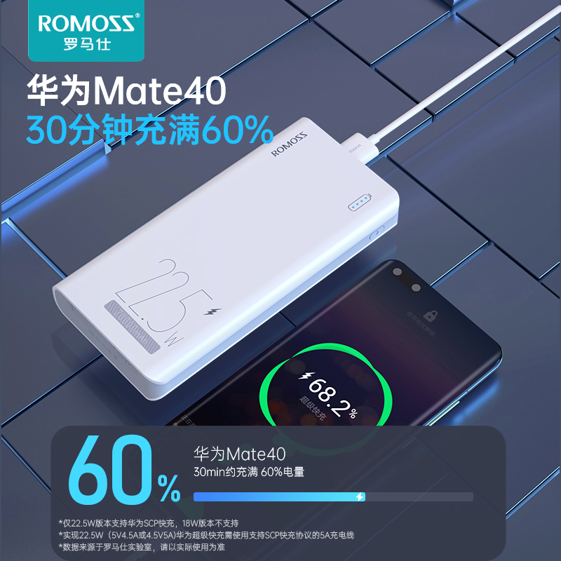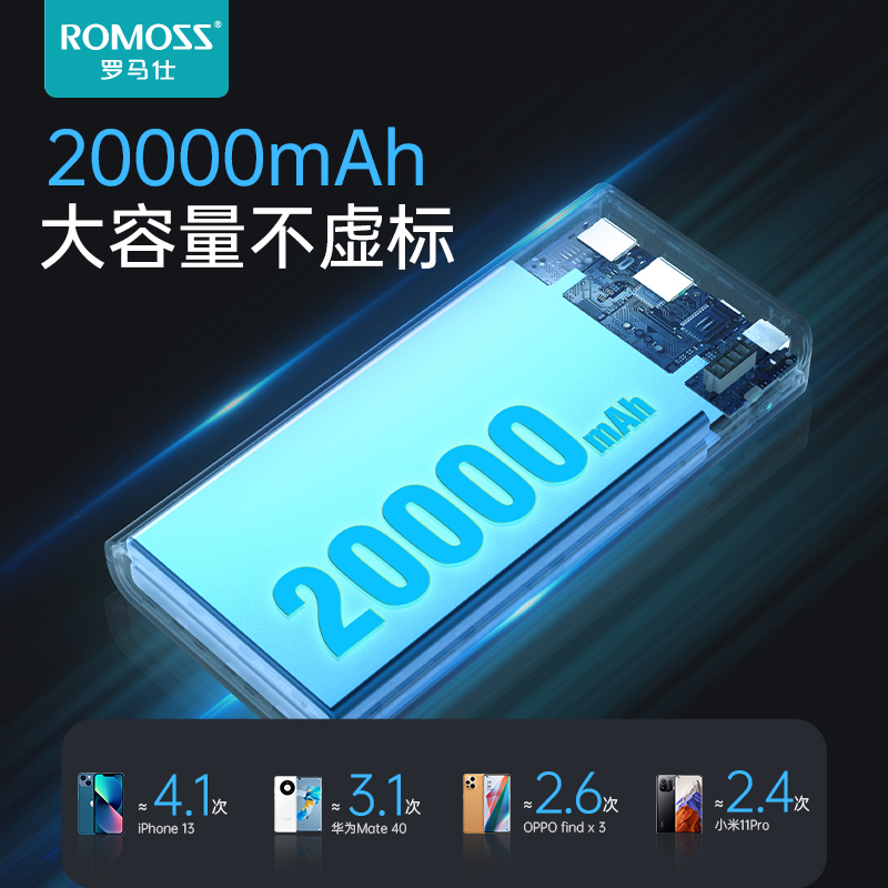 ROMOSS ROMAS 20000 mAh large capacity charging treasure PD fast charge flash charge portable power bank is exclusively applicable to Apple Xiaomi Huawei Romas official flagship store