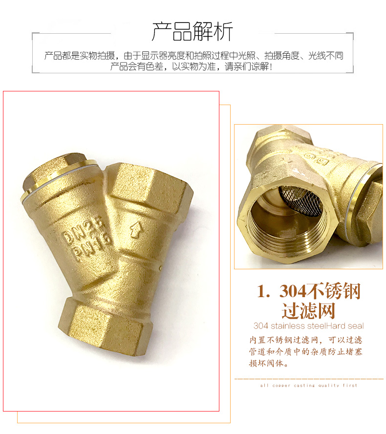 Thickened brass Y-type filter Heating pipe water pipe air-conditioning pipe Y-type valve removable for 4-6 minute 1 inch, etc.