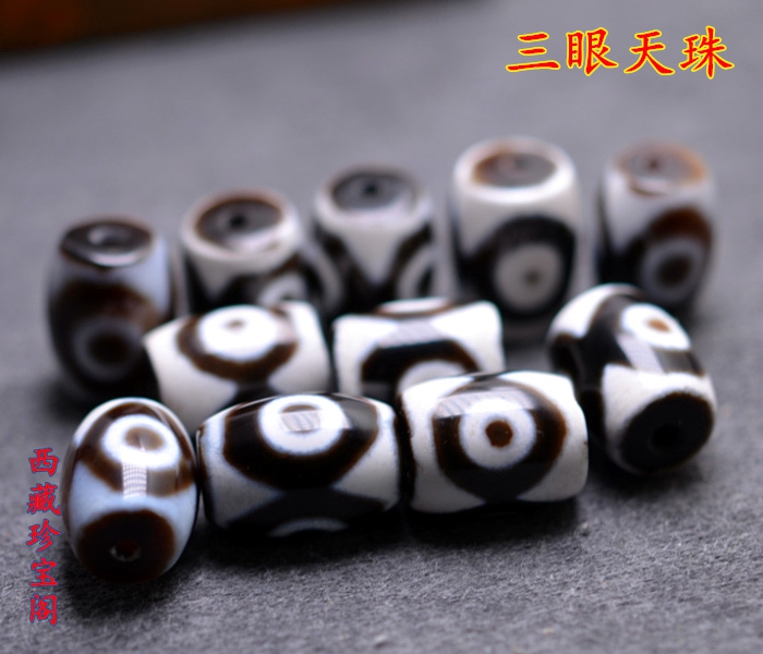 Tibet to pure old mine Tianzhu Three-eyed tiger tooth pattern Tianzhu DIY bracelet with beads Natural loose beads Fidelity hot sale