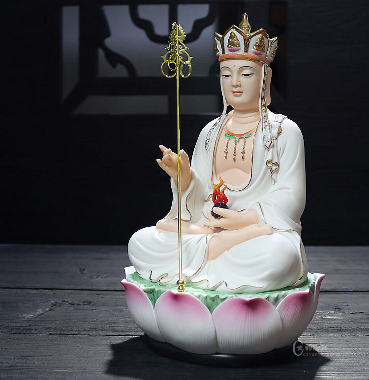 12 inch sitting lotus Tibetan Buddha statue Dehua white porcelain Tibetan king Yusa ceramic mother-in-law three holy places Tibetan Buddha statue