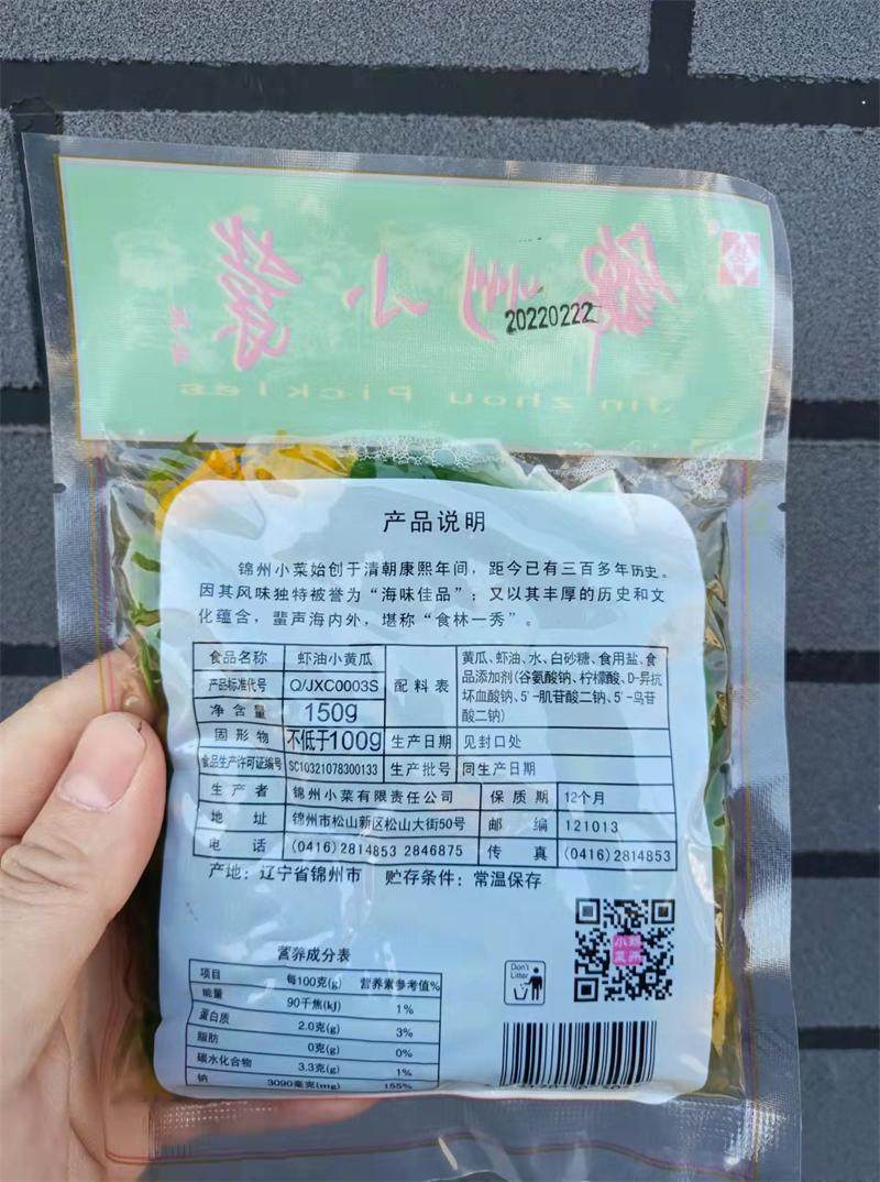 Jinzhou side dish shrimp oil small cucumber light pickles Jinzhou specialty workers and peasants shrimp oil small cucumber 150g crispy cucumber