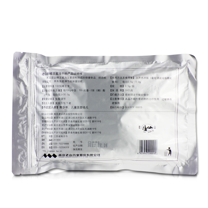 Laoshan royal jelly lyophilized powder 0 5g bags*100 bags*2 bags Package Immunomodulatory