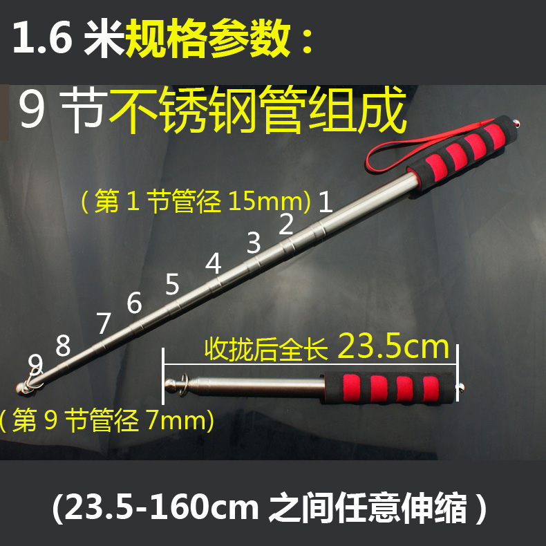 Vinfair 1 6 m plus coarse guided chess-lever reinforced telescopic teaching whip stainless steel telescopic chess-whip