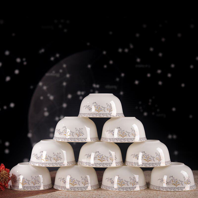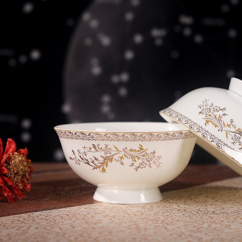 Authentic Jingdezhen high-grade bone porcelain plant flowers Phnom Penh Swan Lake 4 5 inch high foot bowl non-hot rice bowl