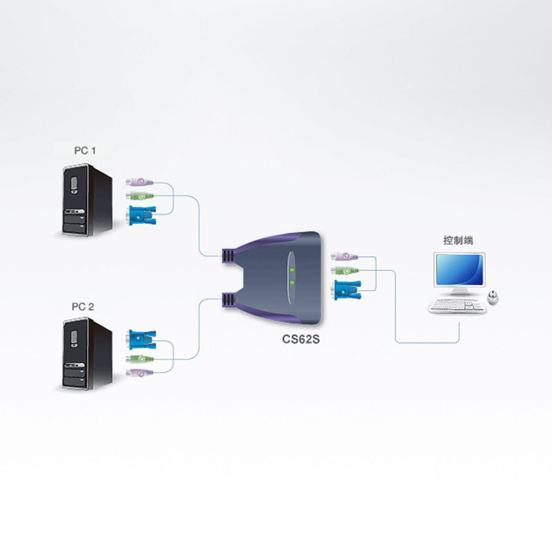 ATEN CS62S two-in-one-out KVM computer VGA video sharer PS2 keyboard mouse switcher