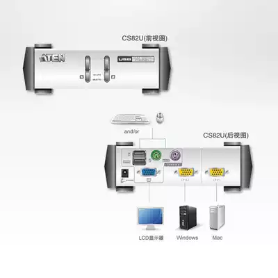ATEN Hongzheng CS82U 2 port VGA multi-computer KVM switcher USB PS2 hybrid connection