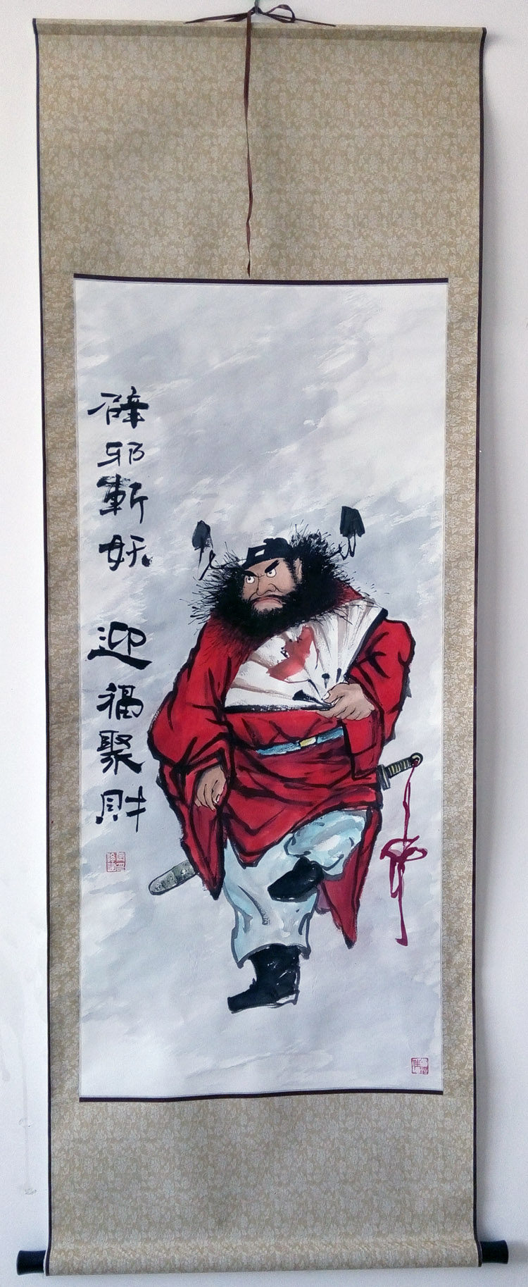 Zhong Kui portrait Rice paper cinnabar hand-painted Chinese painting characters town house evil spirits and ghostbusters mounted well