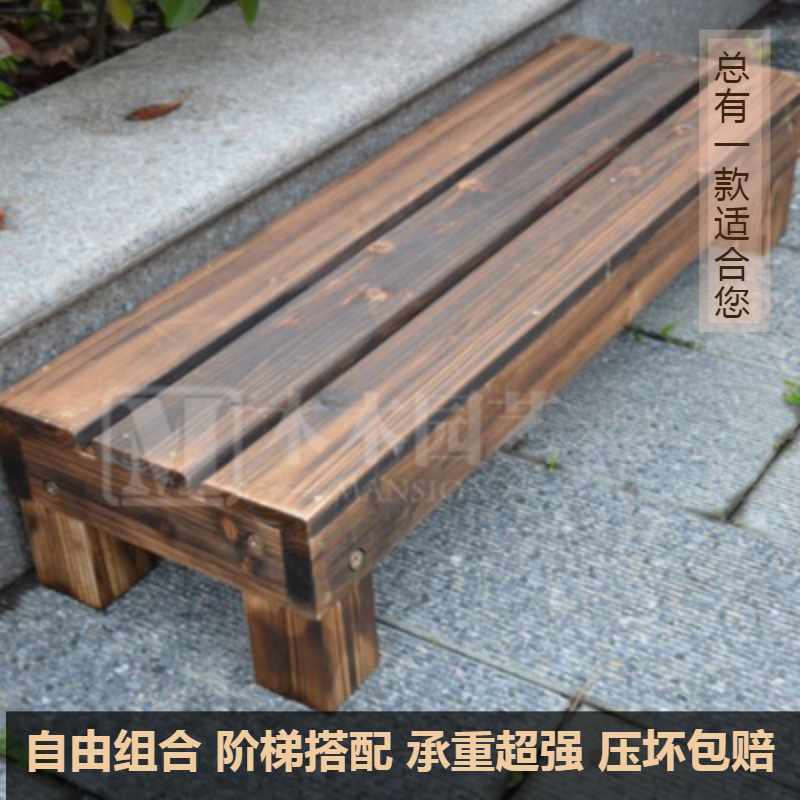 Carbonized solid wood steps outdoor flower stand bathroom pedal balcony garden step stool pastoral flower succulent shelf