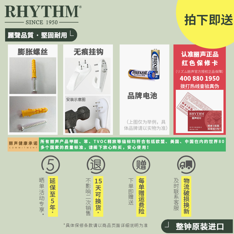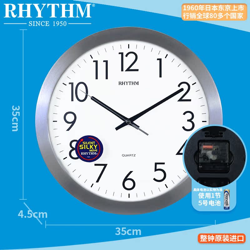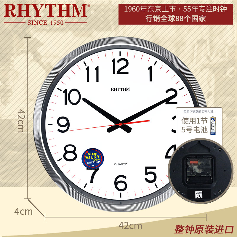 RHYTHM Li Sheng wall clock Simple watch Living room bedroom silent home clock Creative metal wall clock Modern