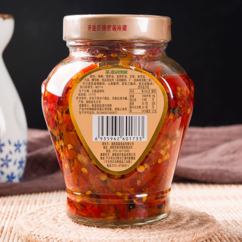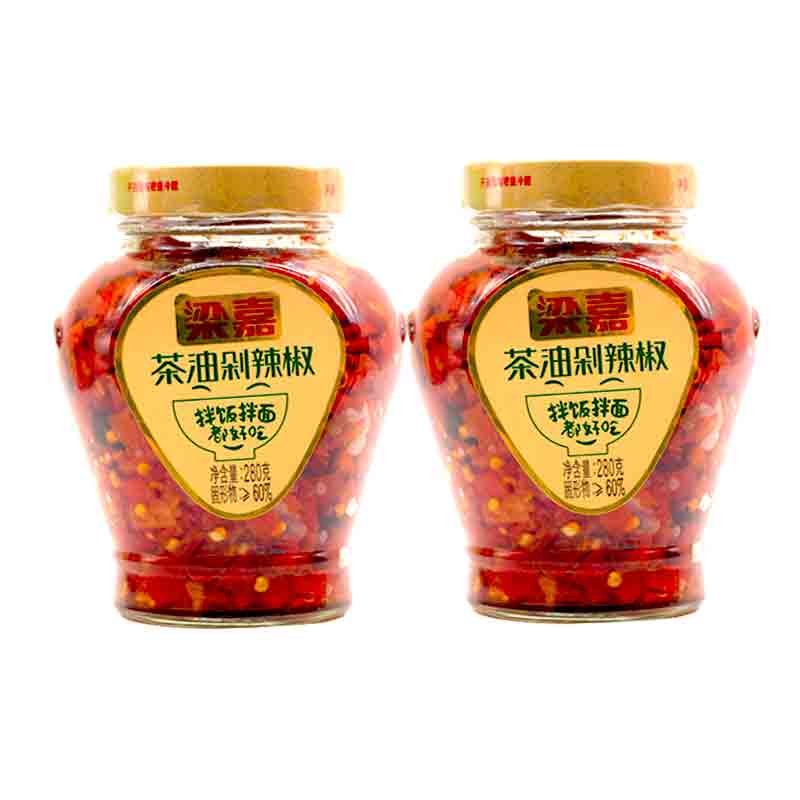 Hunan specialty Liang Jia tea oil chopped chili Liuyang lobster sauce chopped chili seasoning food 280g * 2 bottles of glass bottles