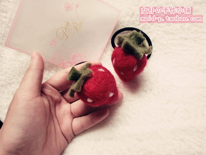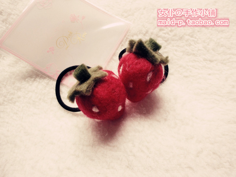 Pure handmade Japanese super cute wool felt strawberry hair ring