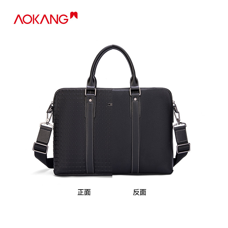 Okom Male Bag Crosswalk Handbag Genuine Leather Bull Leather Briefcase Casual Single Shoulder Bag Slanted Satchel Fashion Business Package Bag