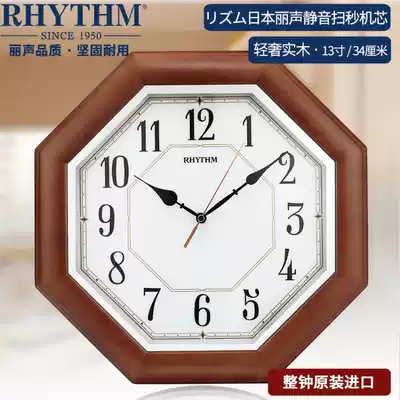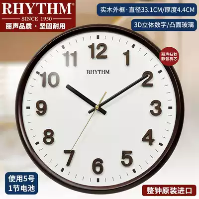 RHYTHM Li Sheng solid wood wall clock living room bedroom office mute European retro wall clock CMG911