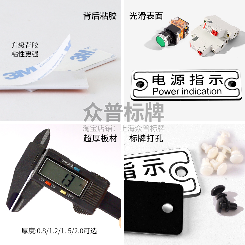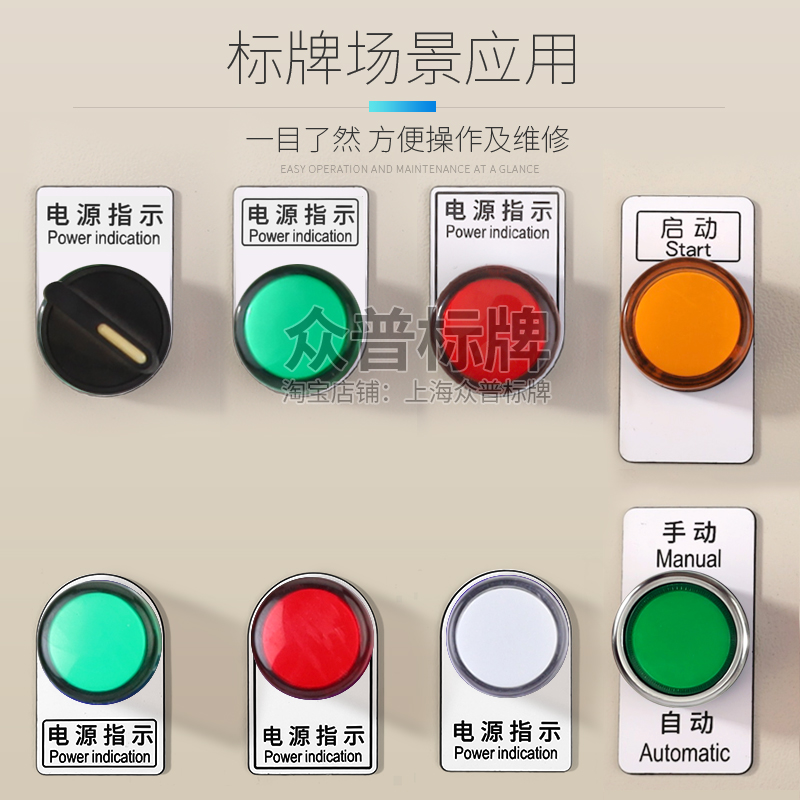 PVC double color board electric box button switch sign control cabinet hanging card machine button switch identification card sticker