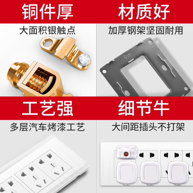 TEP Wall Power Switch Socket Panel 118 Type Wire Drawing White Light Switch Two Large Board Open Switch