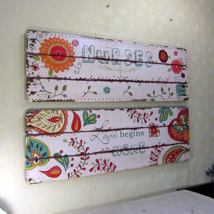 American countryside retro to make old wooden planks painted colorful patterns cartoon graffiti background wall decoration painting children's room hanging paintings