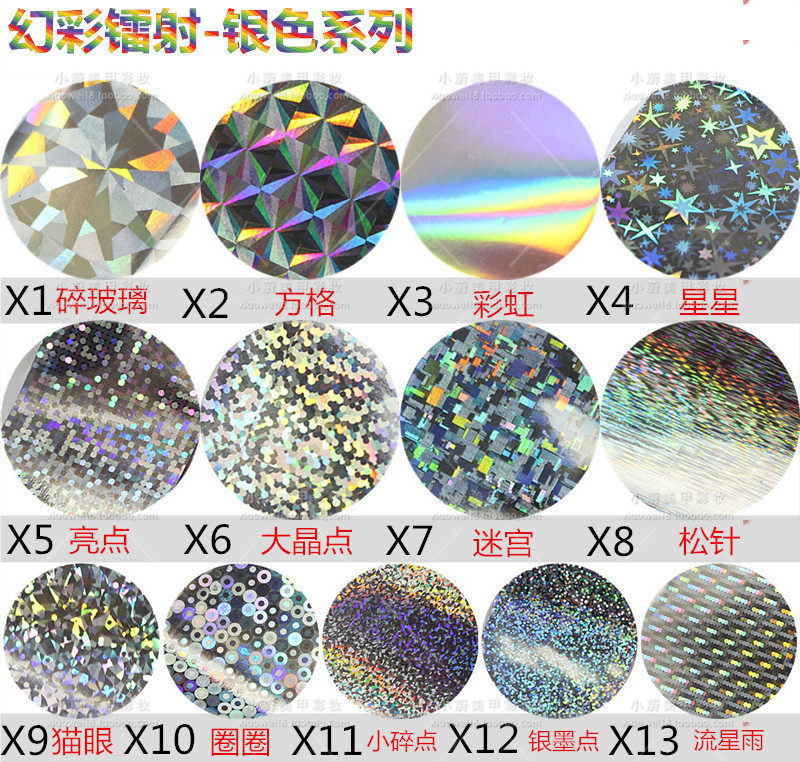 Mechia Decorations Hot Sell Magic Color Laser Silver Stars Empty Chia Stickers Metal Texture Phototherapy Nail Polish Paper-Taobao