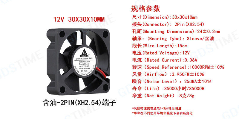 12v 12v 3010 DC DC Cooling small fan 2P-XH2 54 terminals
