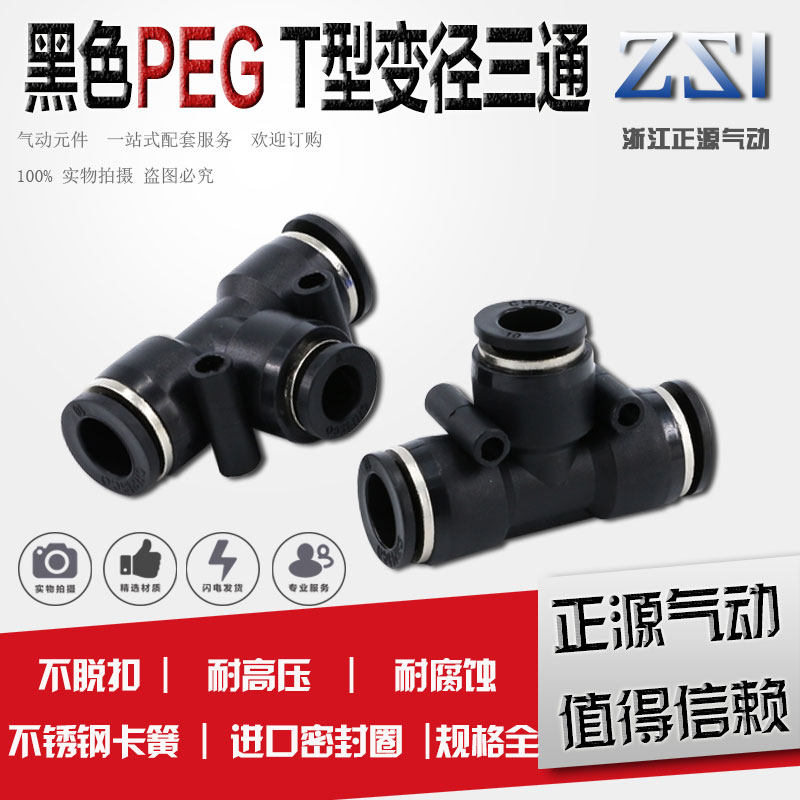 Pneumatic boutique black quick T-diameter three-way connector PEG6-4 8-6 10-8 12-8 12-10