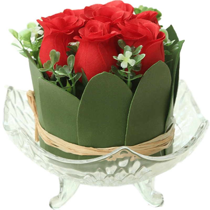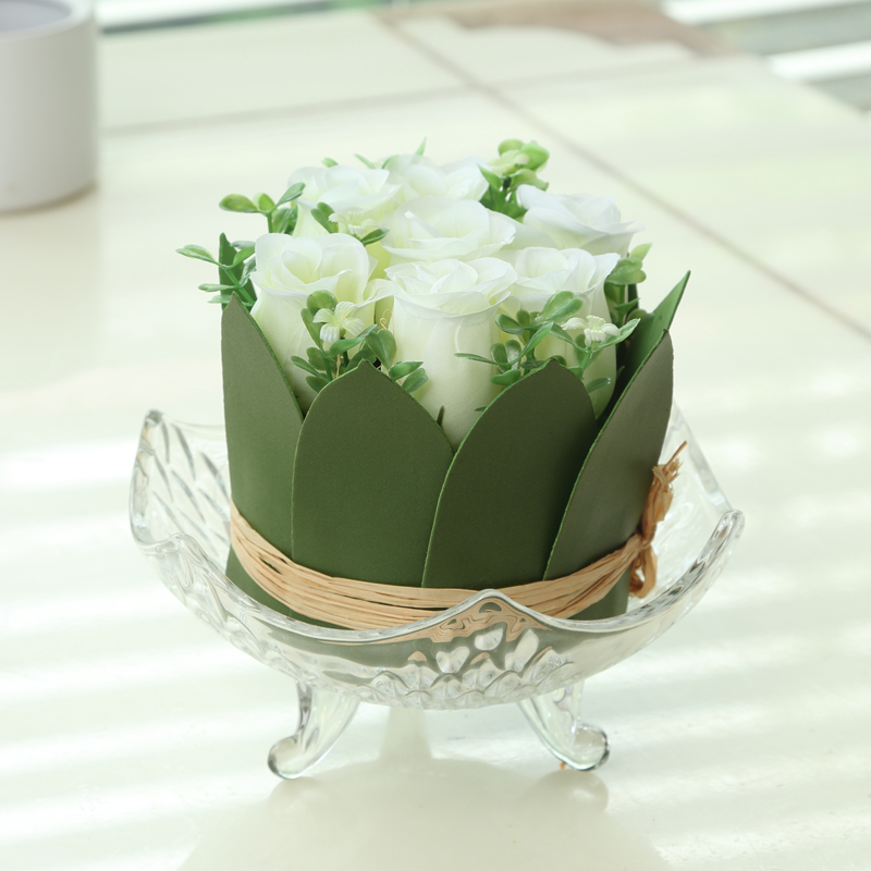 Hand-tied rose bouquet simulation fake flower glass flower pot set decoration silk flower tea table table top display flower decoration