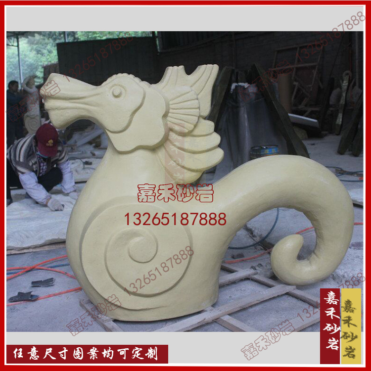Sandstone relief sandstone sculpture round carving Roman column decoration garden park community landscape decoration water spray seahorse