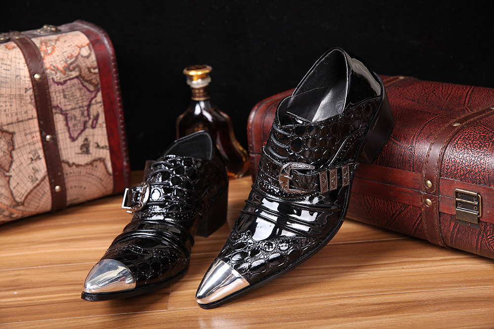 Korean fashion trend British style pointed leather shoes high shoes gentlemen Korean version men's shoes men's high-heeled hairdresser's shoes