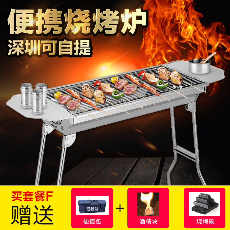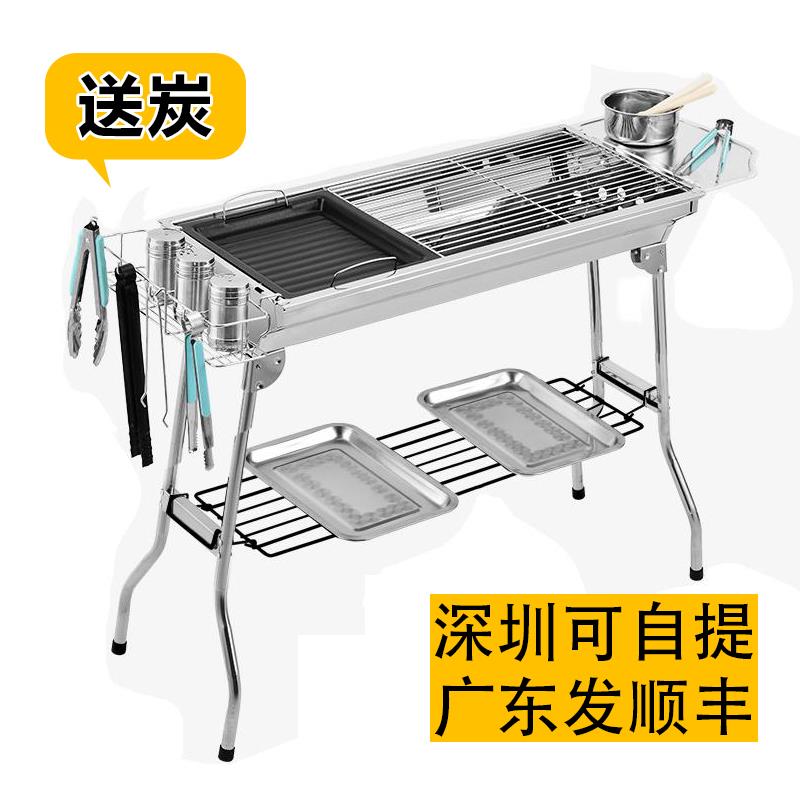 Qingxin stainless steel barbecue grill Outdoor portable barbecue grill Household large charcoal barbecue grill thickened barbecue stove