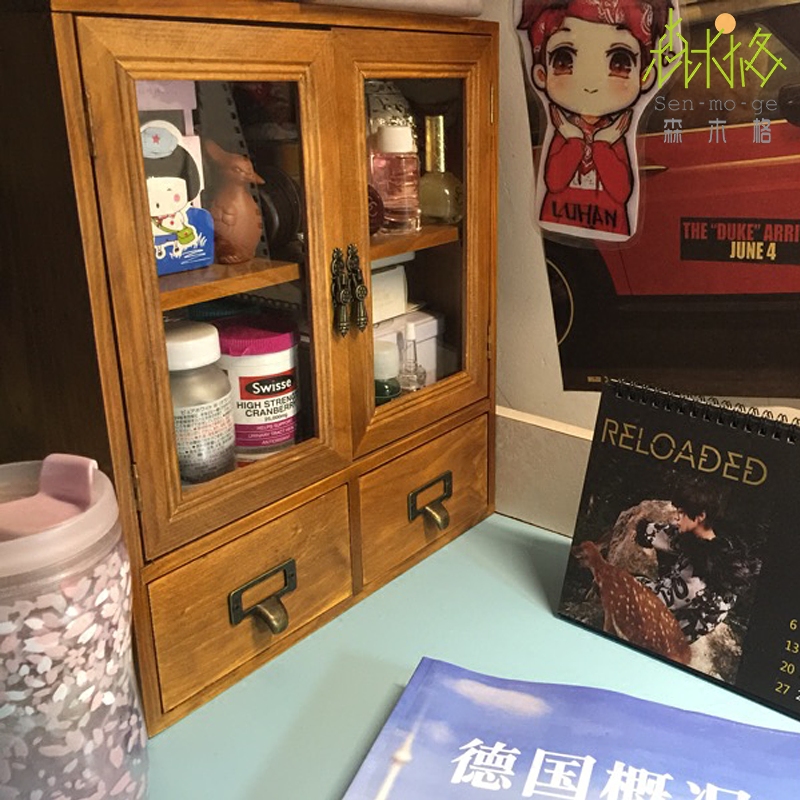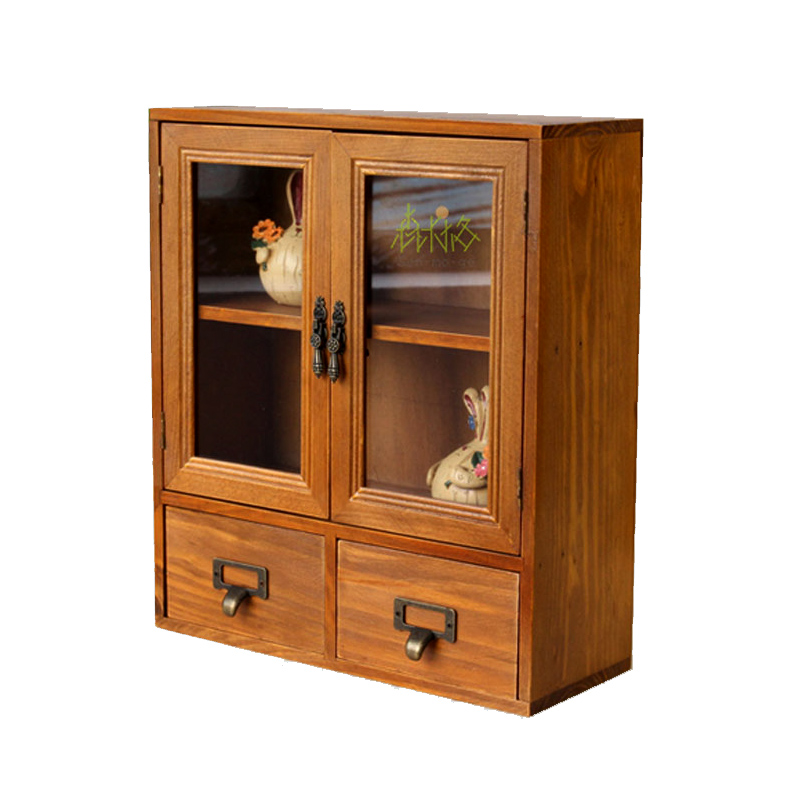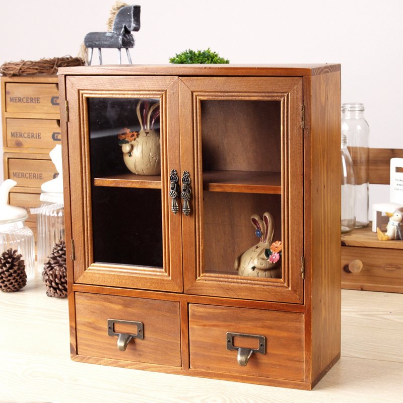 zakka retro glass door double drawer containing cabinet perfume cabinet first decorated case storage box double door cabinet