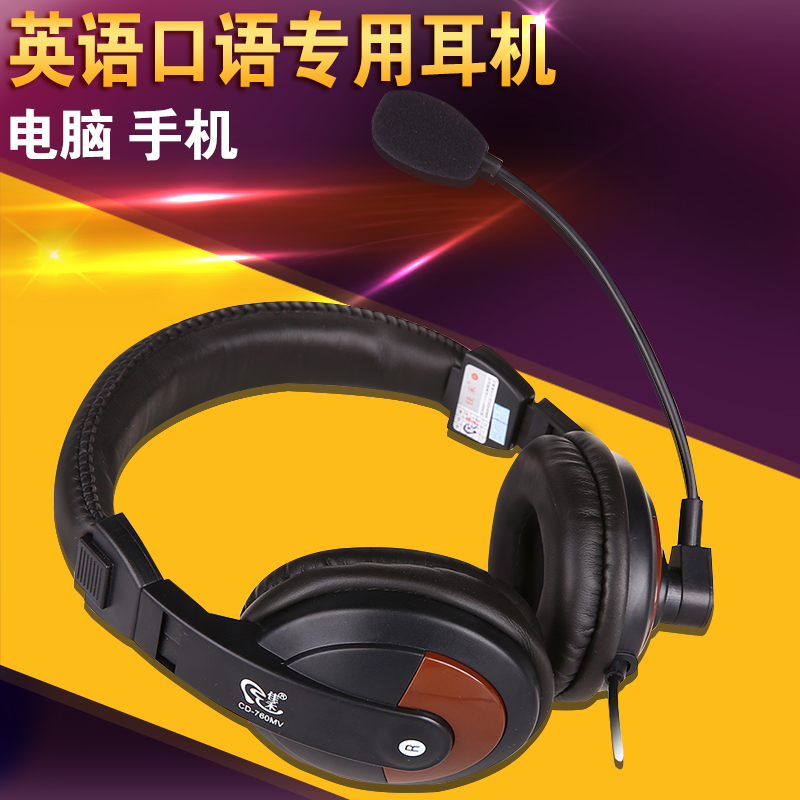 Jiahe computer headphones with wheat-wearing phone desktop tablet cable Chinese exam English Listening hearing Special recording students Internet class ear wheat double plug CD760