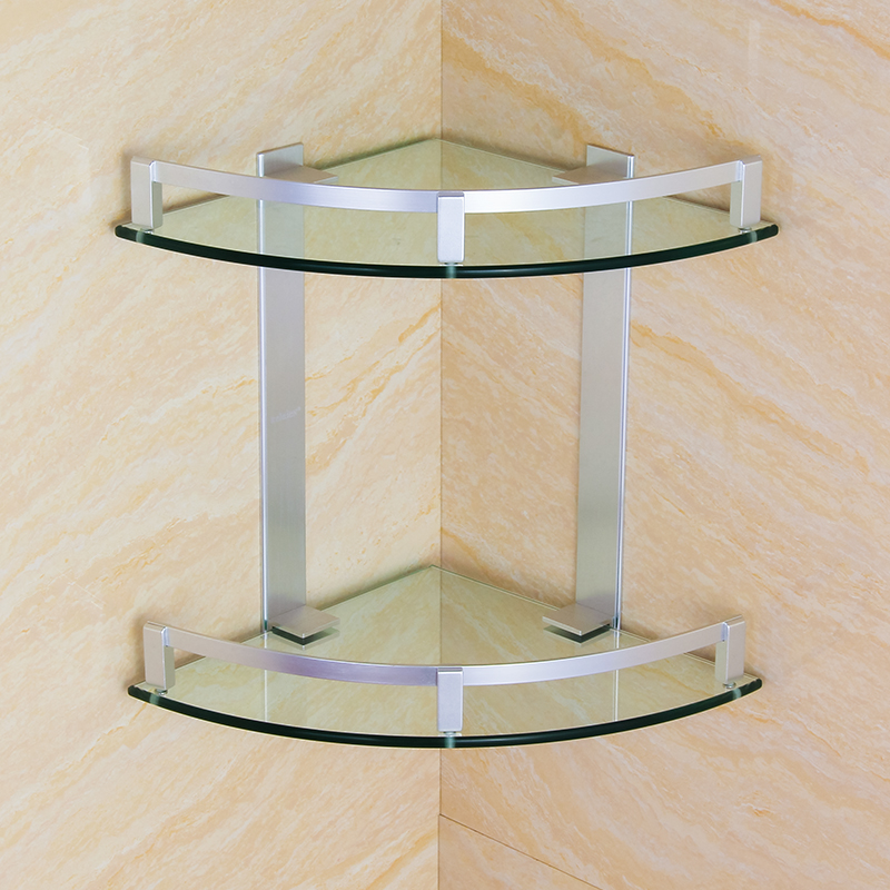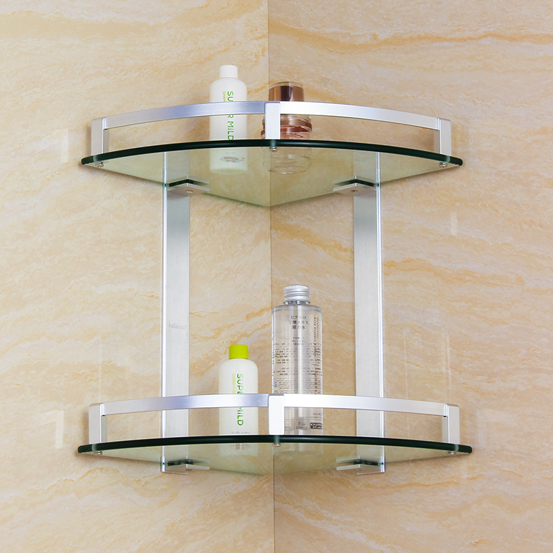 Space Aluminum Tripod Bathroom Two Floors Glass Corner Rack Bathroom Double corner basket Toilet Accommodating Shelf Thick-Taobao