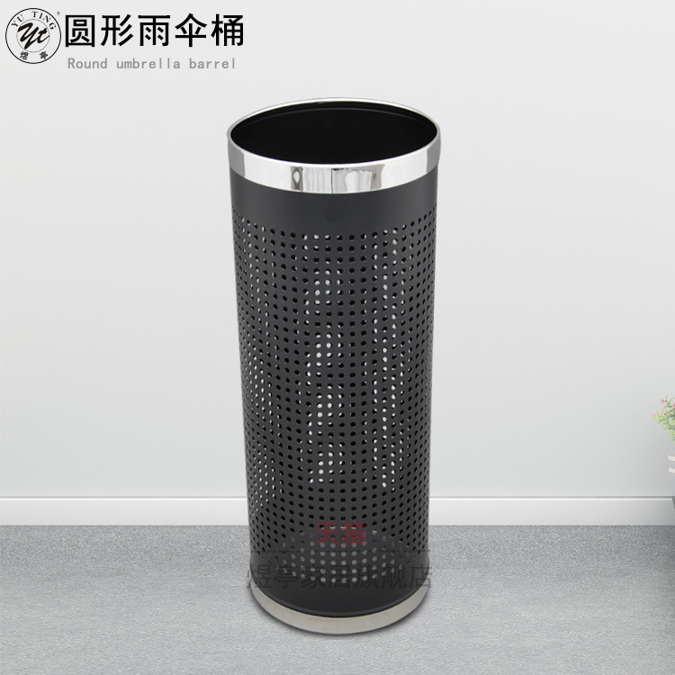 Stainless steel umbrella barrel Black paint umbrella storage bucket Hotel put umbrella barrel long handle umbrella barrel