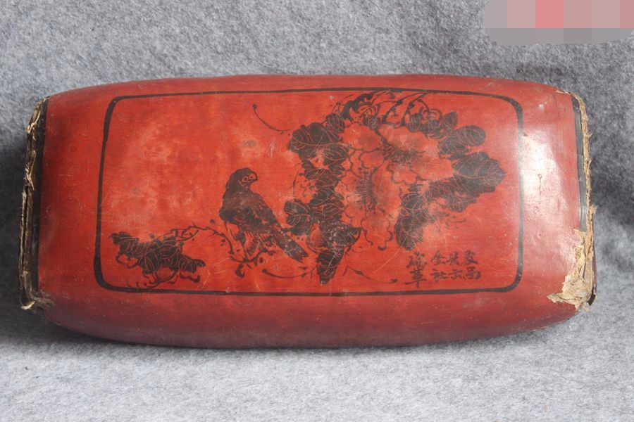 50s Ruijin County Leather Community Flowers Bird Plot for People's Service Slogan Leather Pillow 33cm ZZ 1650-Taobao