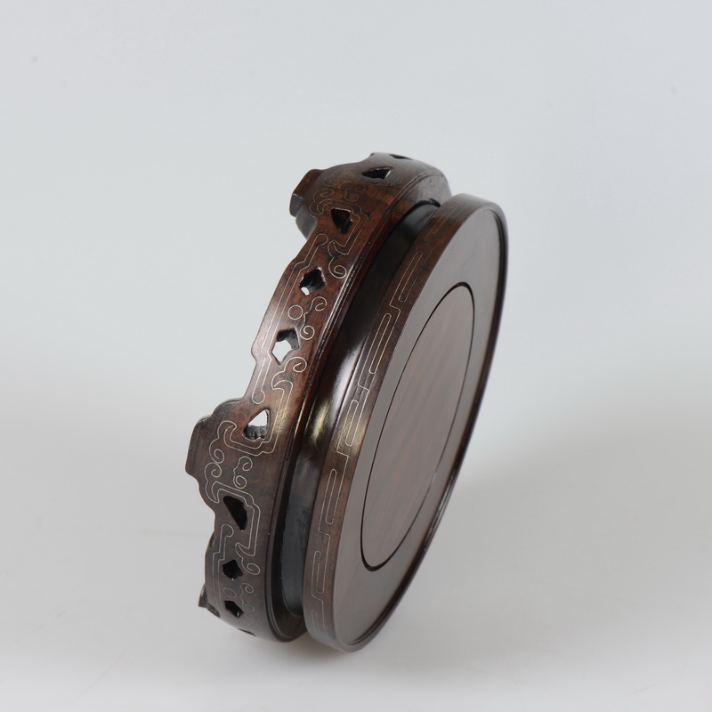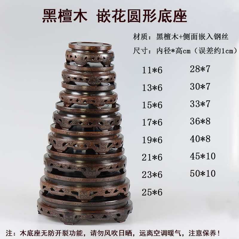 Buddha Base Vase Base Solid Wood Round Black Sandalwood Carved Base Fish Bonsai Base Wooden Pendulum base