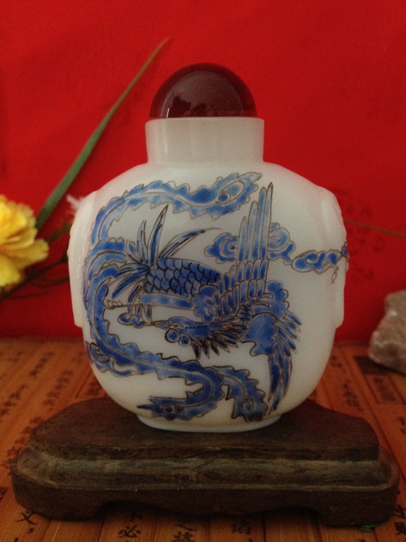 Bogu Shelf Book House Home Pendulum imitation ancient glazed thick material Double Fenglong pattern snuff Smoke Pot Birthday Little Gift Collection