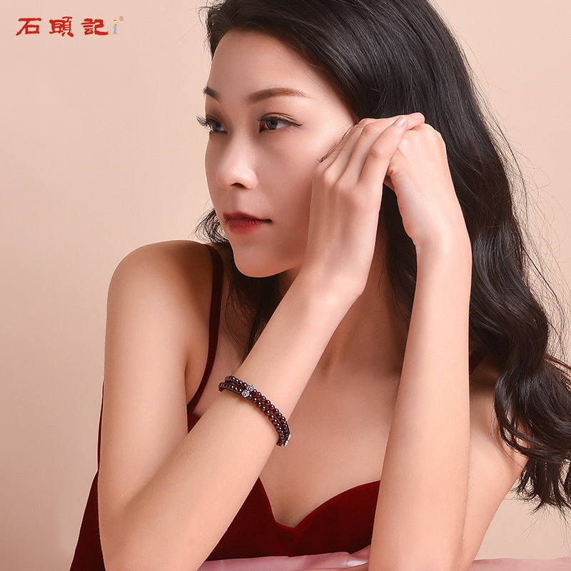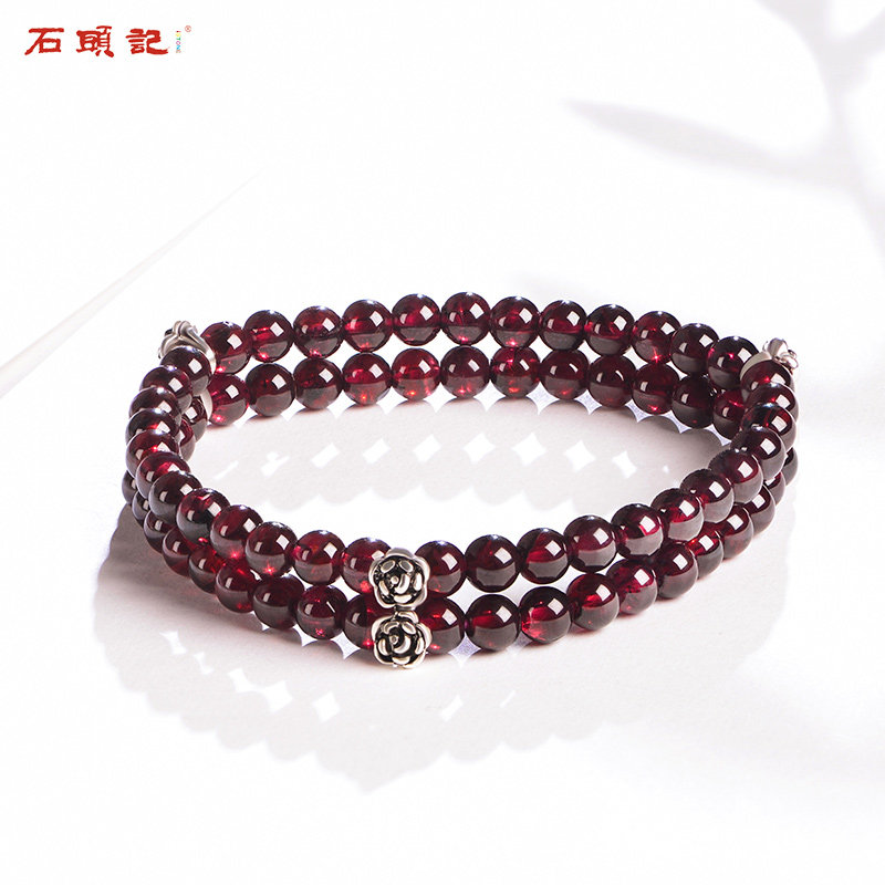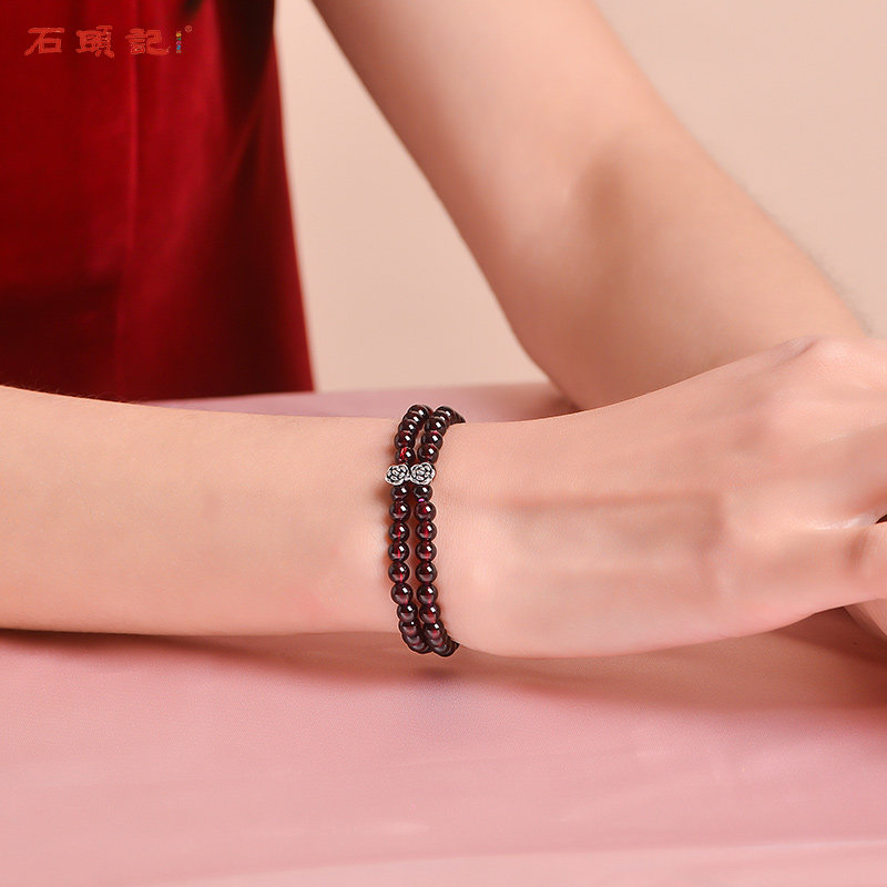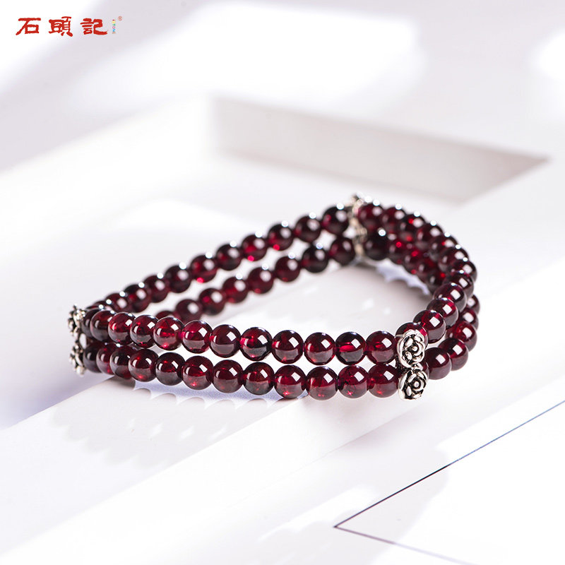 Stone Head Remember Happiness Love Natural Wine Red Pomegranate Stone Polycircle Handmade Woman Retro Petal Silver Hand Strings Holiday Gifts