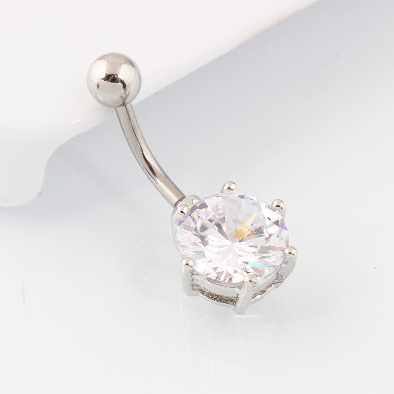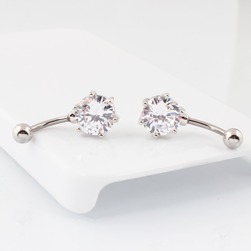 Anti-allergy belly button ring 10mm zircons Multi-claw nail zircon No allergy medical steel 1 6 coarse needle piercing