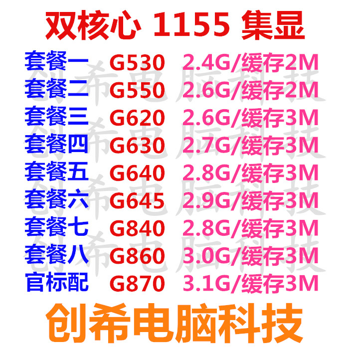 G530 G550 G620 G630 G640 G645 G840 G860 G870 Dual core 1155 pin CPU