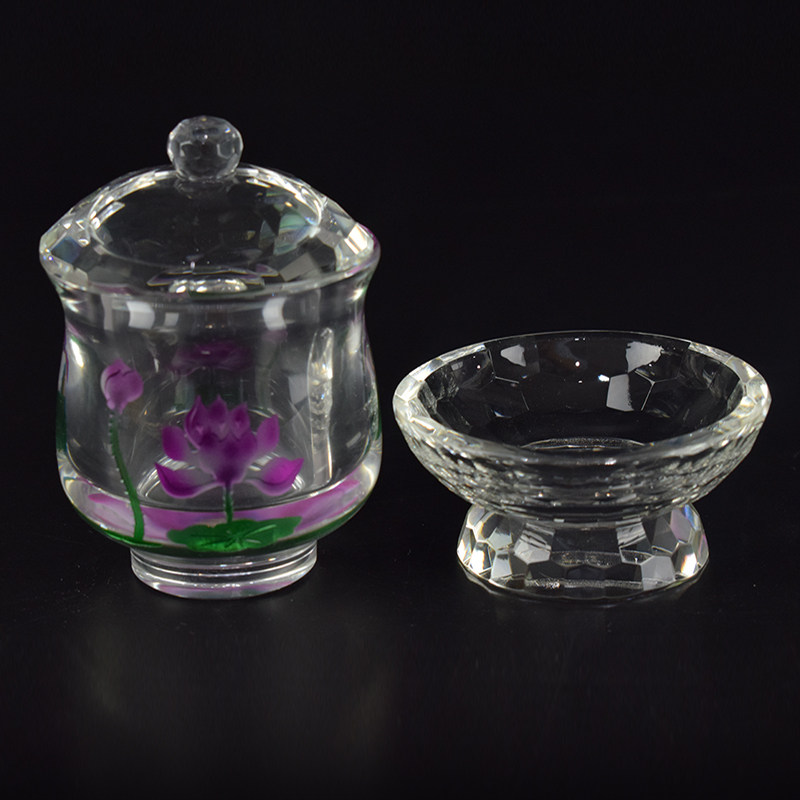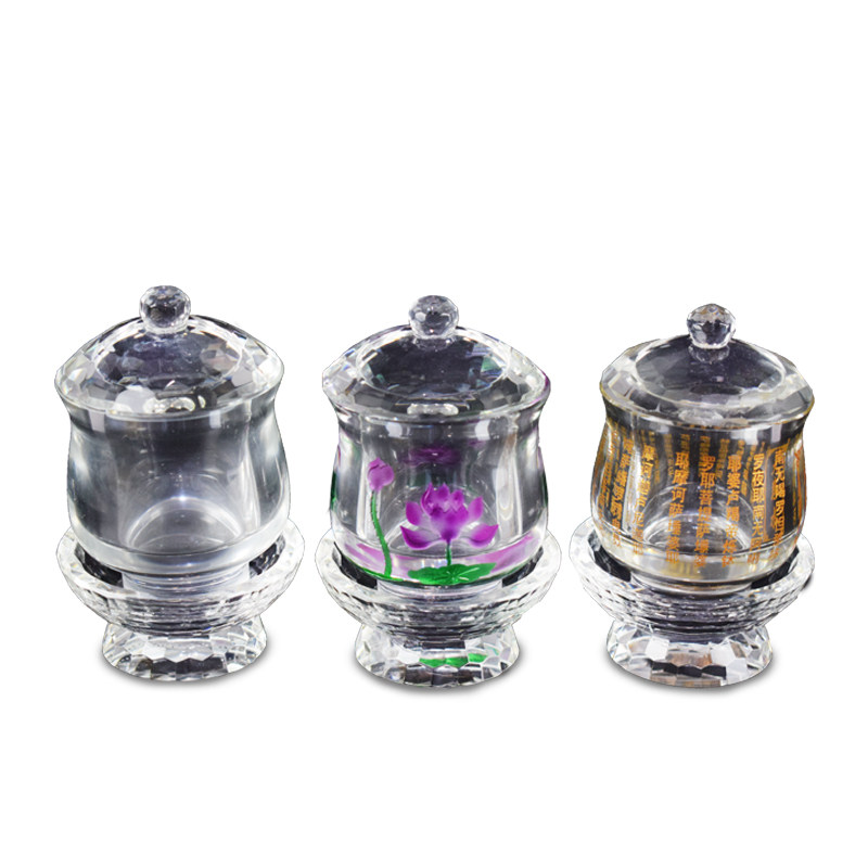 Buddhist Supplies Buddha Hall Holy Water glass Three light body front for the Buddha Heart via the great tragically cursive lotus K9 crystal water supply cup