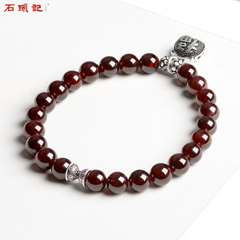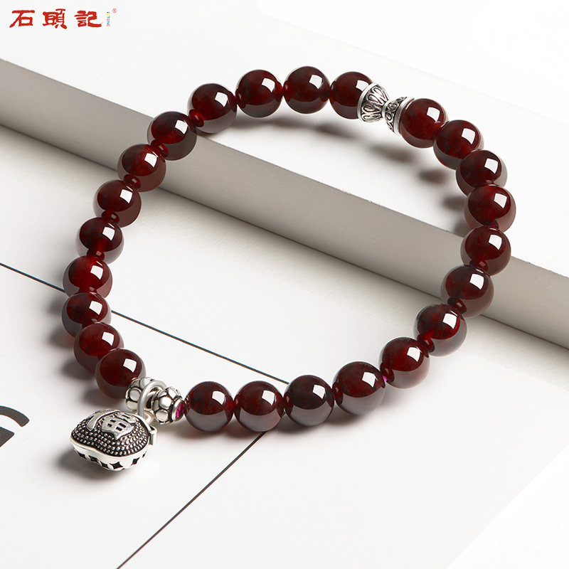 Stone head Luck Blessing Bag Natural Pomegranate Stone Handmade Female Handstring Single Ring Pop Ornament 925 Silver