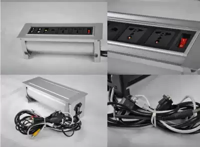 Manual flip information desktop socket multimedia rotating table integrated module power interface wire management box no welding