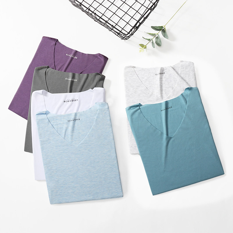 Shuya Underwear Men's High-End Platinum Ya casual cut seamless ultra-fine modal short-sleeved V-neck T-shirt
