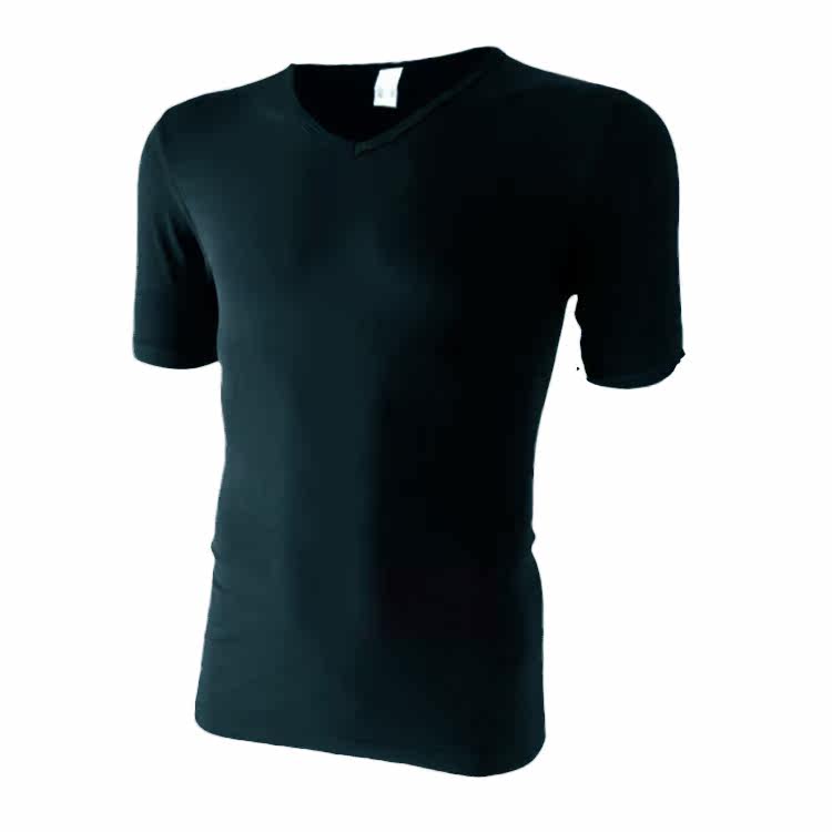 Men plus fat plus solid color sports base shirt Basketball running fitness elastic short sleeve t-shirt special black