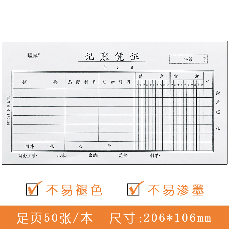 Qianglin manual general accounting accounting certificate Handwritten paper Office accounting financial supplies Amount statement